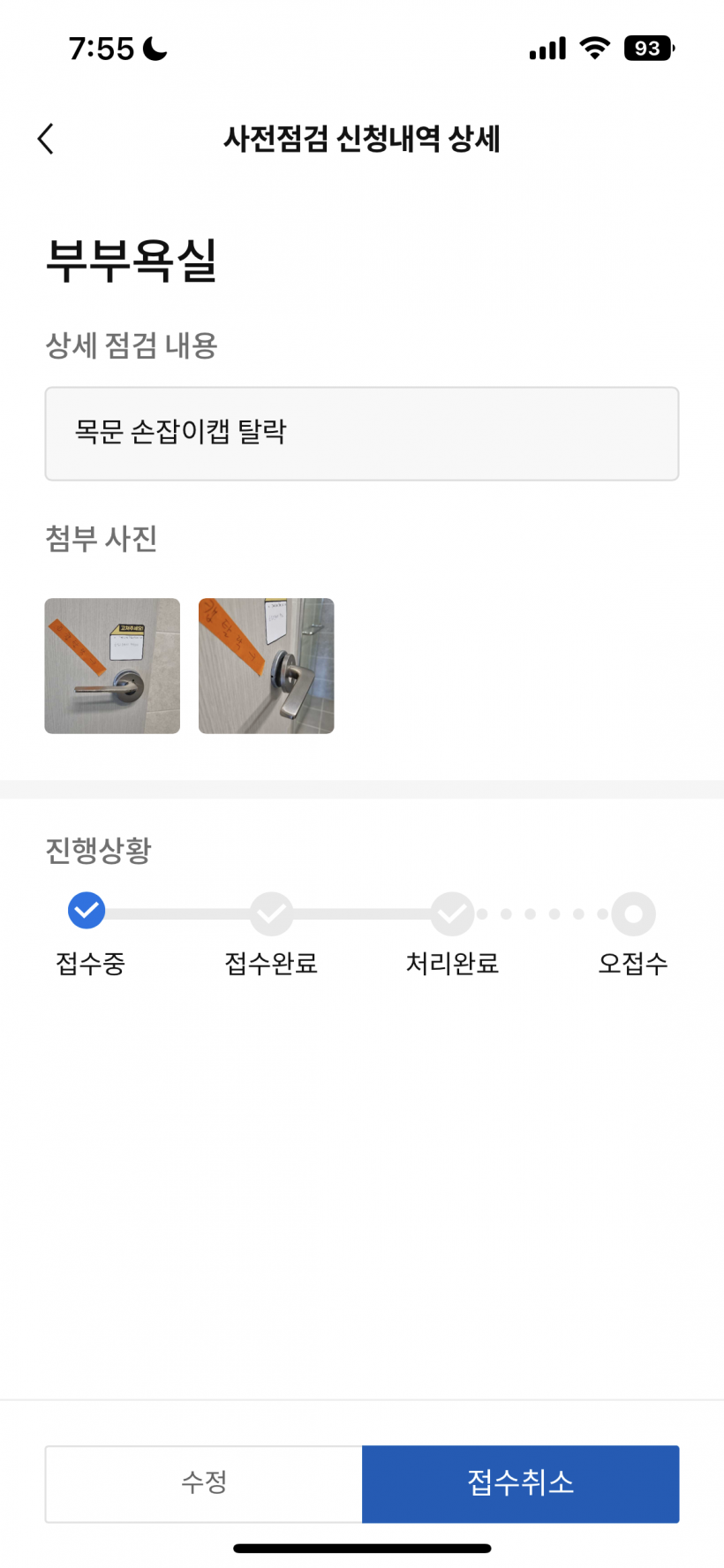 저희 아파트 공동구매로 진행했던 타업체로 진행했던 다른 입주민분들은 사전점검 시 문제가 있었던 위치가 아닌 방을 다르게 등록해 하자접수를 못해 문제가 생기는 등 다양한 일들이 있었는데, 저희는 IHI에서 문제없이 어플로 하자 접수를 해주셔서 너무 편하게 처리를 할 수 있었습니다!